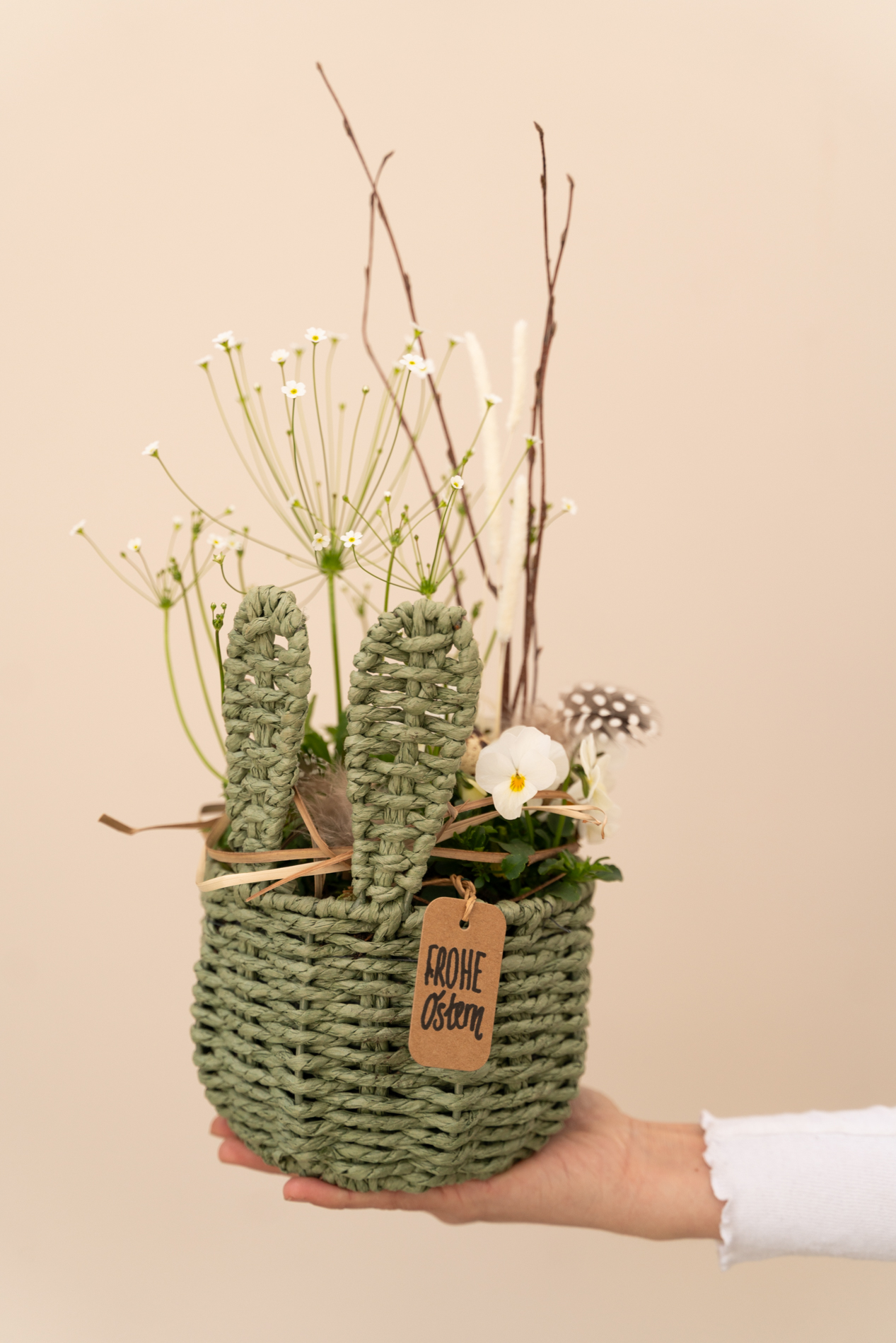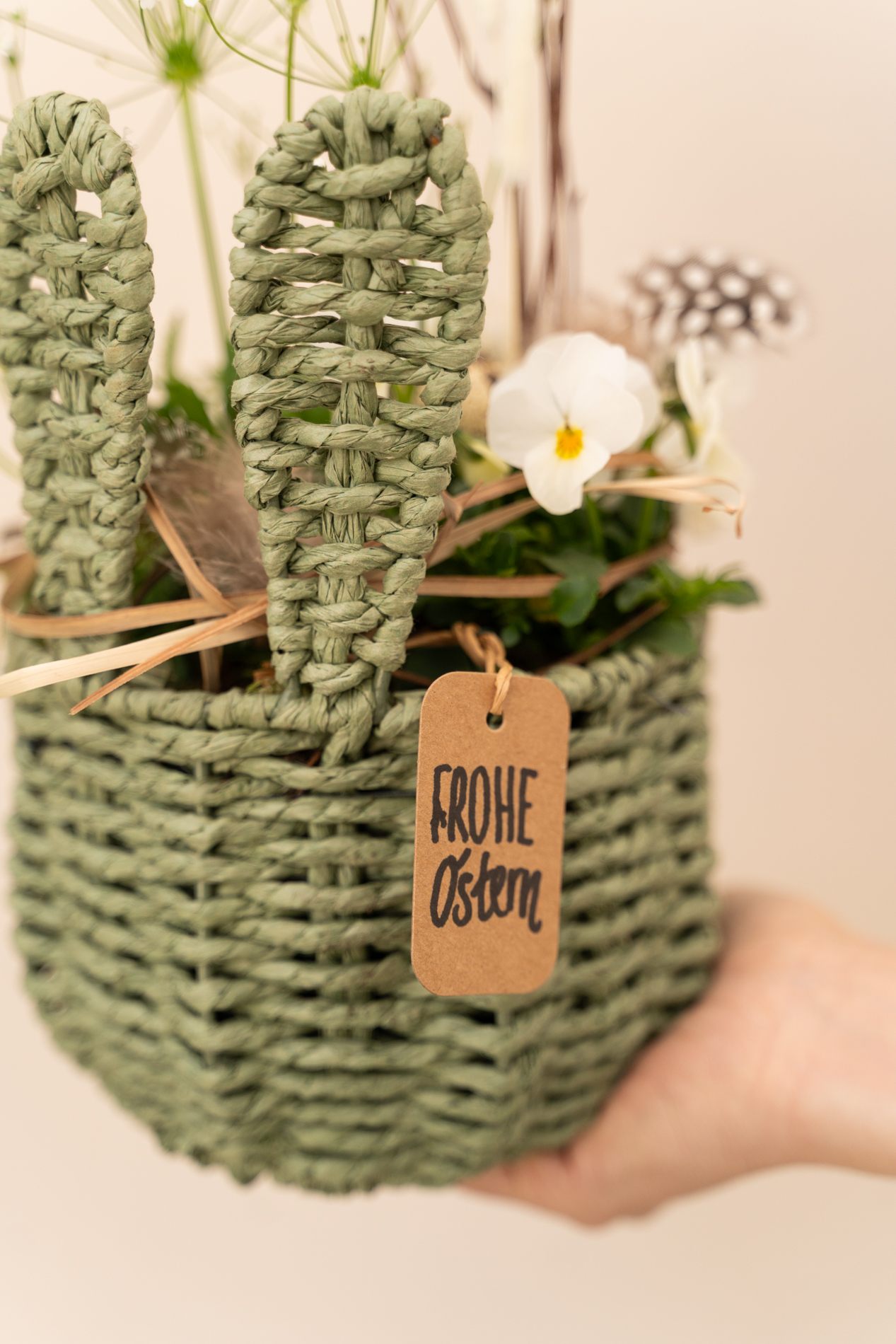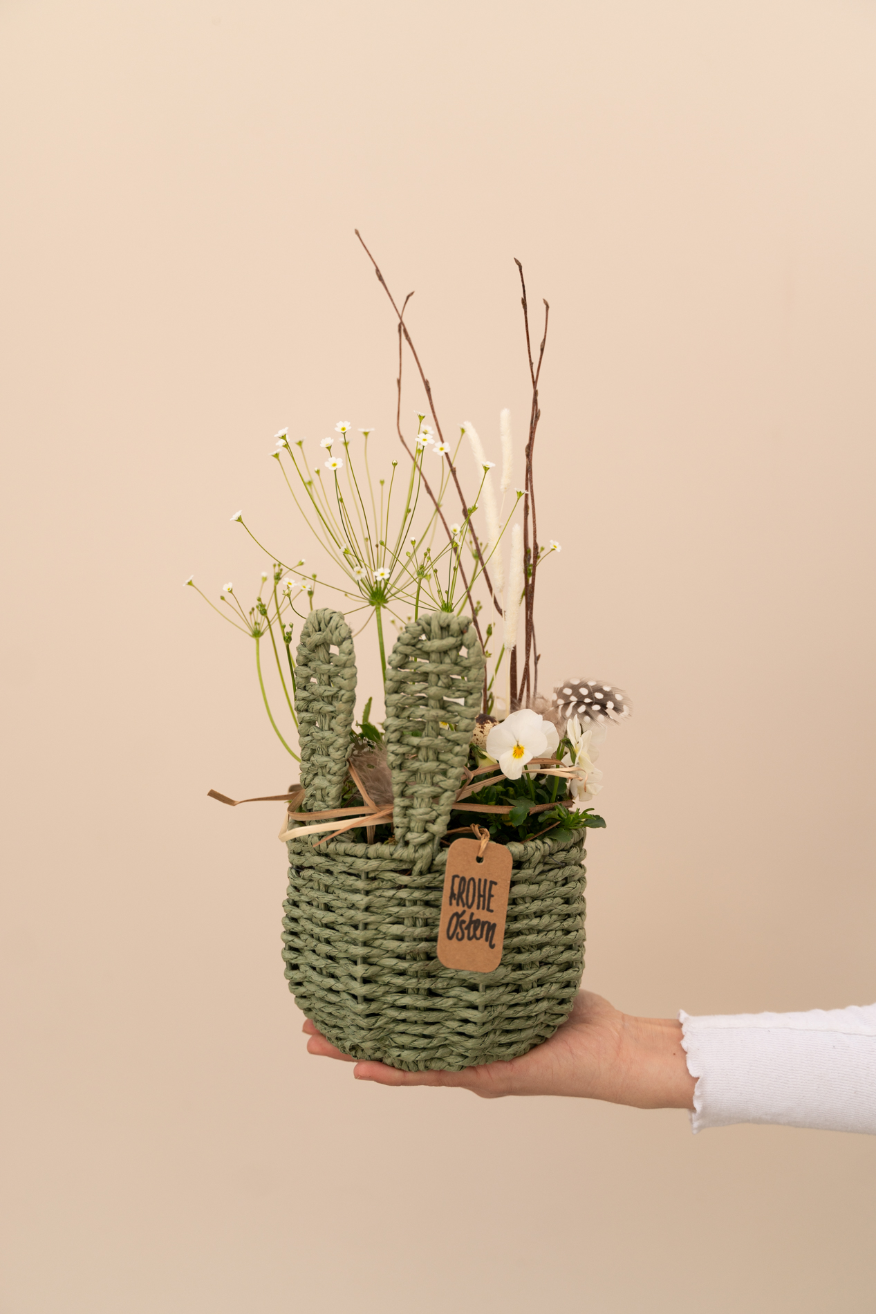 Osterkorb mit Öhrchen in grün-natur