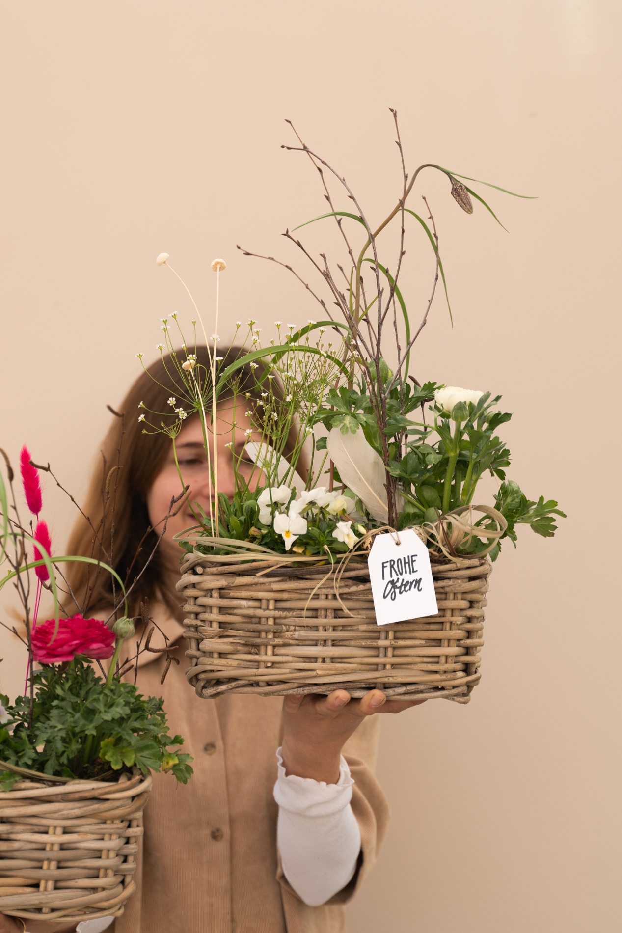 - mit Osterdeko, wie Federn, Zweige und Eiern