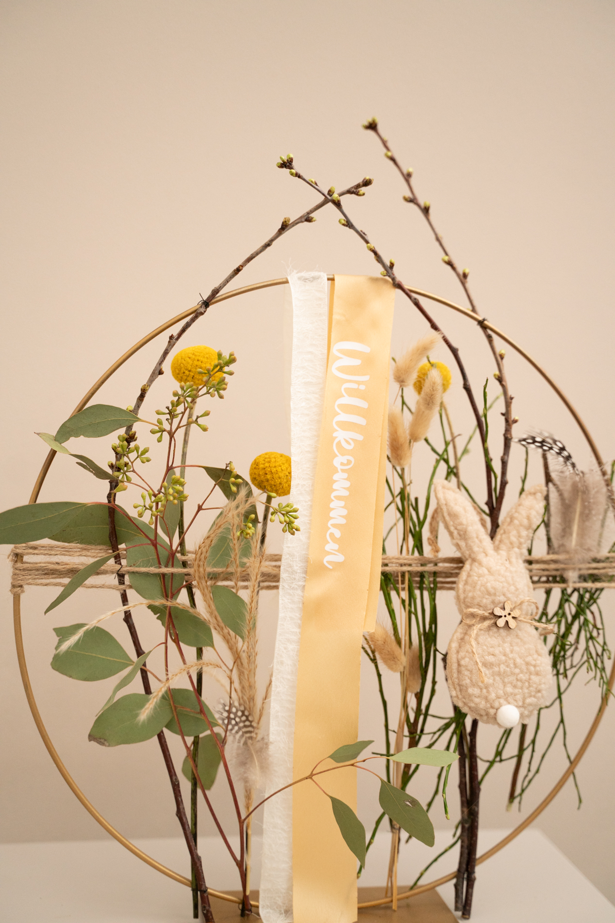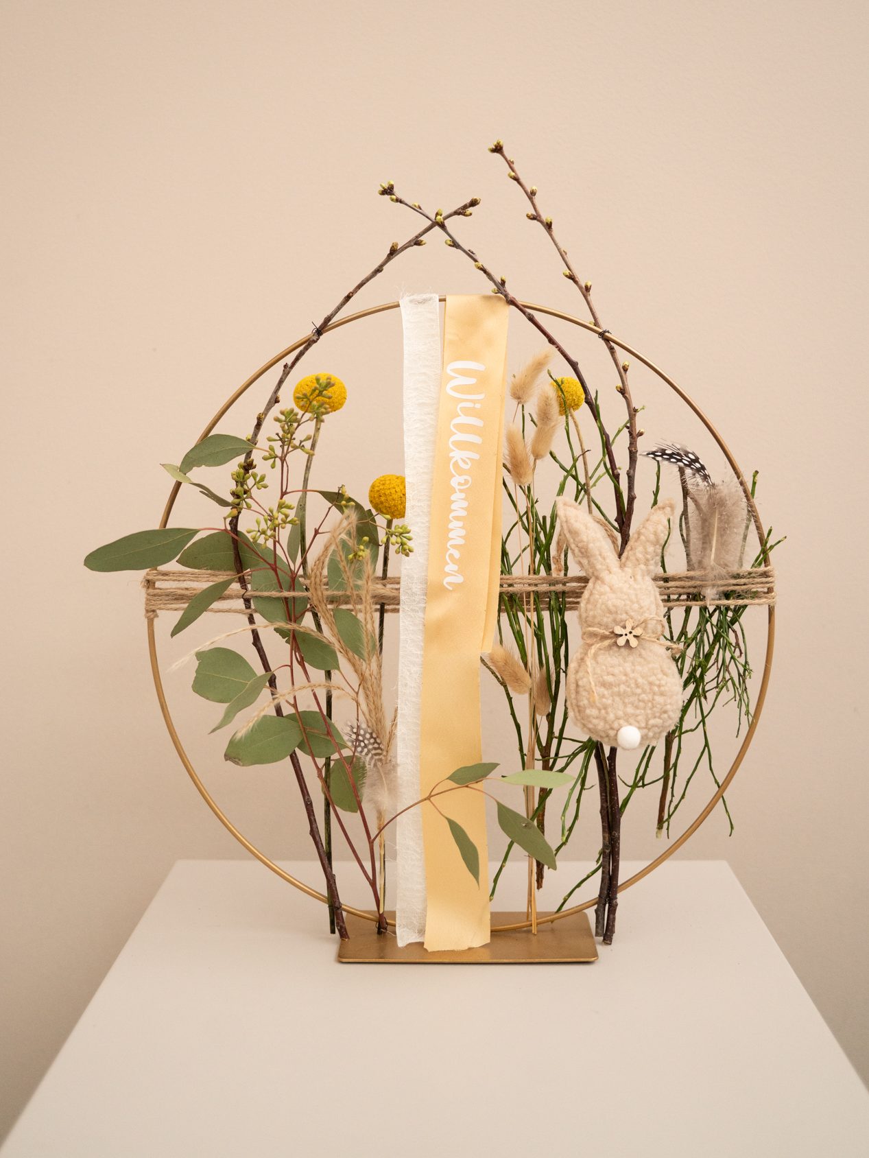 mit Osterdeko, wie Federn